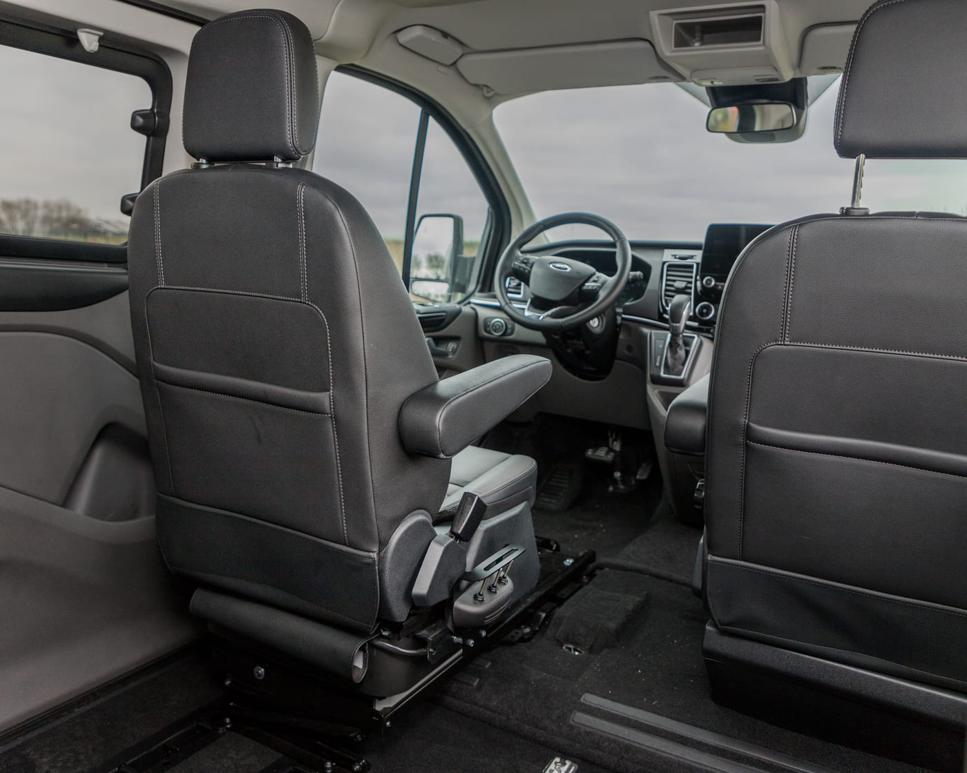 L’embase 6 positions peut être installée côté conducteur ou côté passager. Si le siège d’origine du véhicule ne s’avère pas compatible avec l’embase 6 positions, cette dernière peut recevoir un siège spécifique, particulièrement adapté à l’embase.