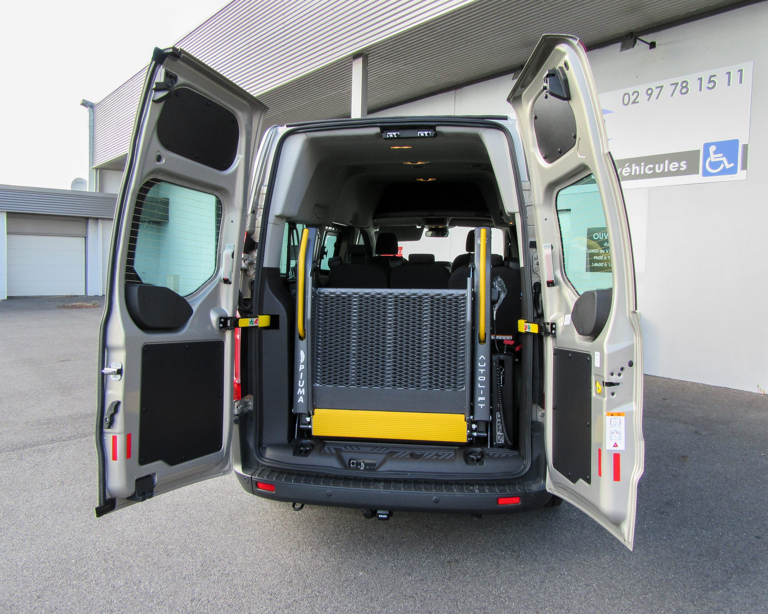 La plate-forme élévatrice PIUMA est la solution appropriée à toute personne désirant se transférer dans son véhicule avec son fauteuil roulant par la porte arrière. Une télécommande filaire fournie avec la plate-forme permet de l’actionner simplement et sans aucun effort.