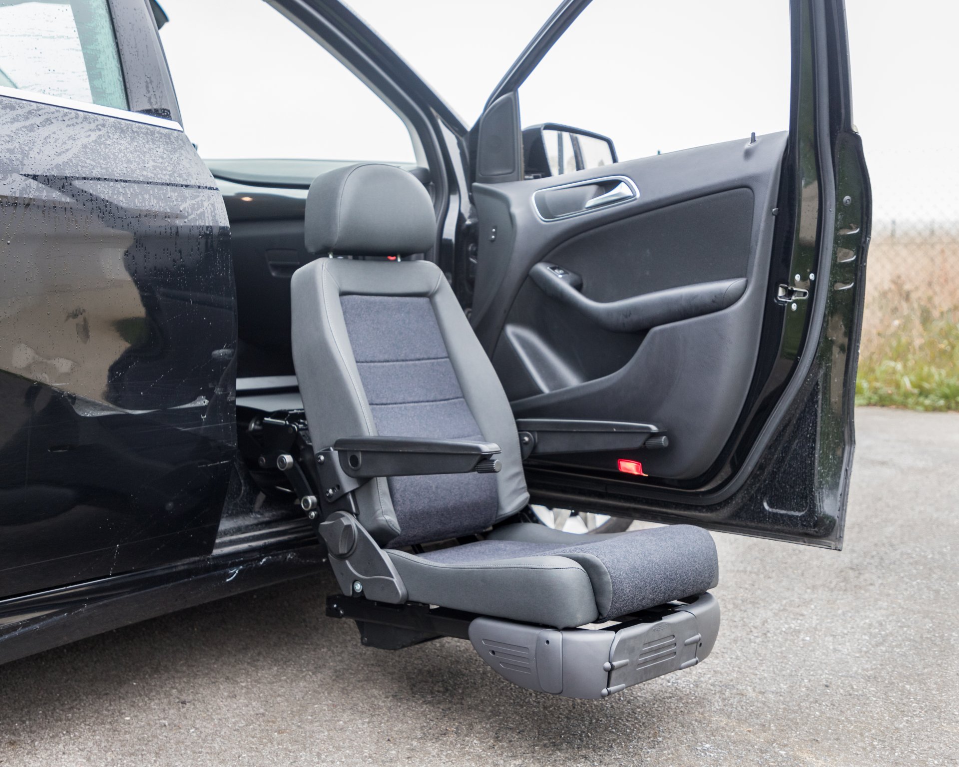 Le Turny est une embase pivotante vouée à présenter le siège conducteur ou passager du véhicule dans la position la plus appropriée pour un transfert simple, sans effort, ni contorsions. Une fois la rotation complètement opérée, le Turny s’abaisse pour présenter le siège à bonne hauteur.